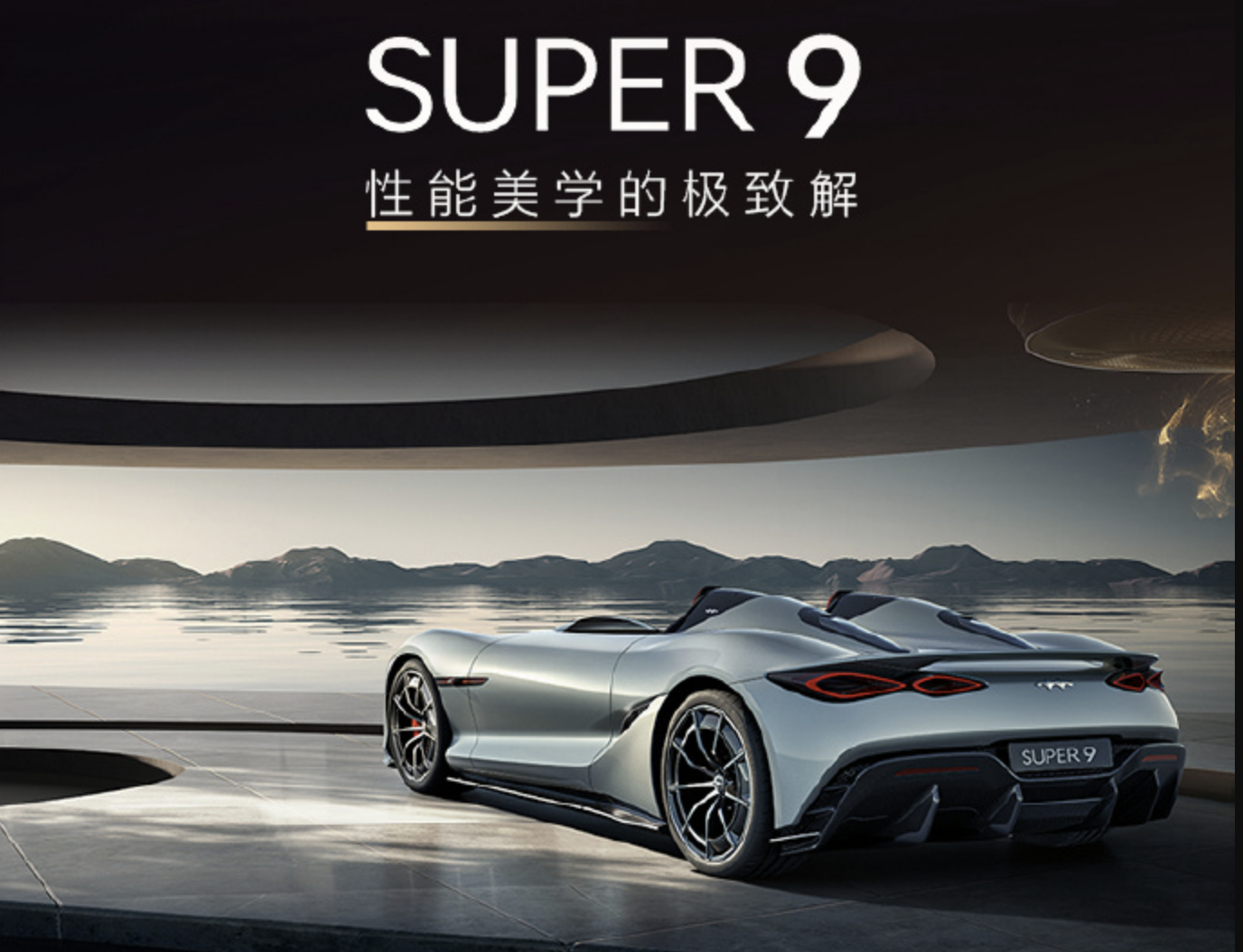 SUPER 3是豹3的概念车,根据“星际战车”的创意,以简练、夸大、立体的线条发明出雕塑般的金属车身结构,构成张扬的特性表达。SUPER 9作为Speedster品类的专业跑车,SUPER 9选用“太空座舱”式双驾驶室、开放式车顶规划所打造的新能源年代高功能跑车。