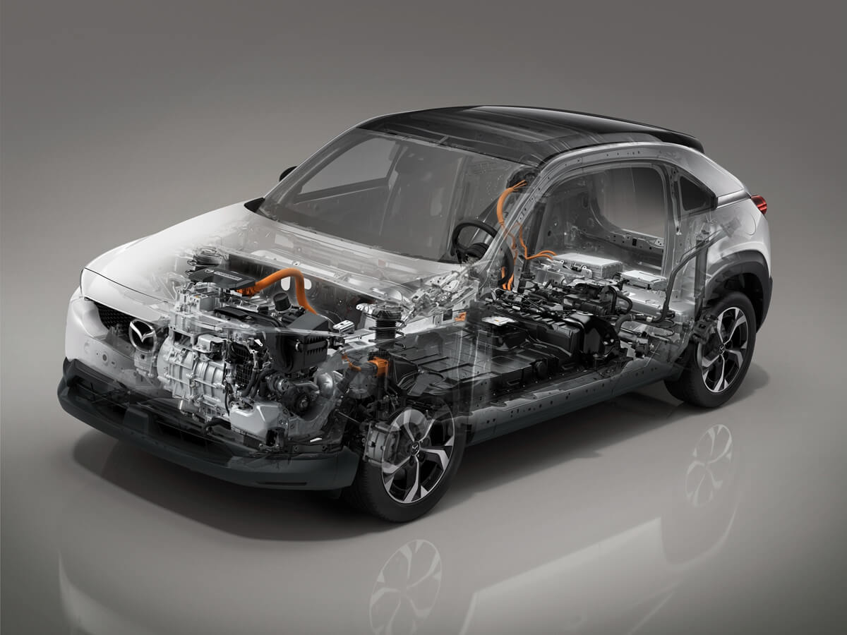 R-EV装备17.8 kWh电池,依此电量的纯电动续航路程为85公里,选用Mazda共同的转子引擎技能,全新830 cc单转子汽油引擎可作为发电机,完结更长间隔的行进,而没有路程或充电焦虑。由于引擎和车轮之间没有机械衔接,转子设备仅充任发电机,保证MX-30 R-EV一直透过电动马达驱动,以供给无缝的电动车驾驭体会。